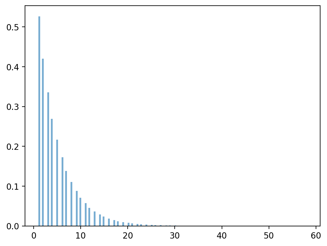 We can verify that \(x\) is indeed geometrically distributed by the following numpy program.